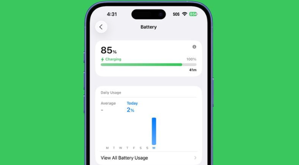 首先,iOS 26重新设计了“设置”中的电池界面。顶部新增实时电池状态显示,包括当前电量及上次充电时间。若设备正在充电,还将提示“充满所需时间”。系统不再仅提供24小时或10天的数据,而是引入“周平均使用”视图,对比当前与日常的耗电差异,明确提示用户当前是否属于高耗电状态,并通过通知提醒异常使用。